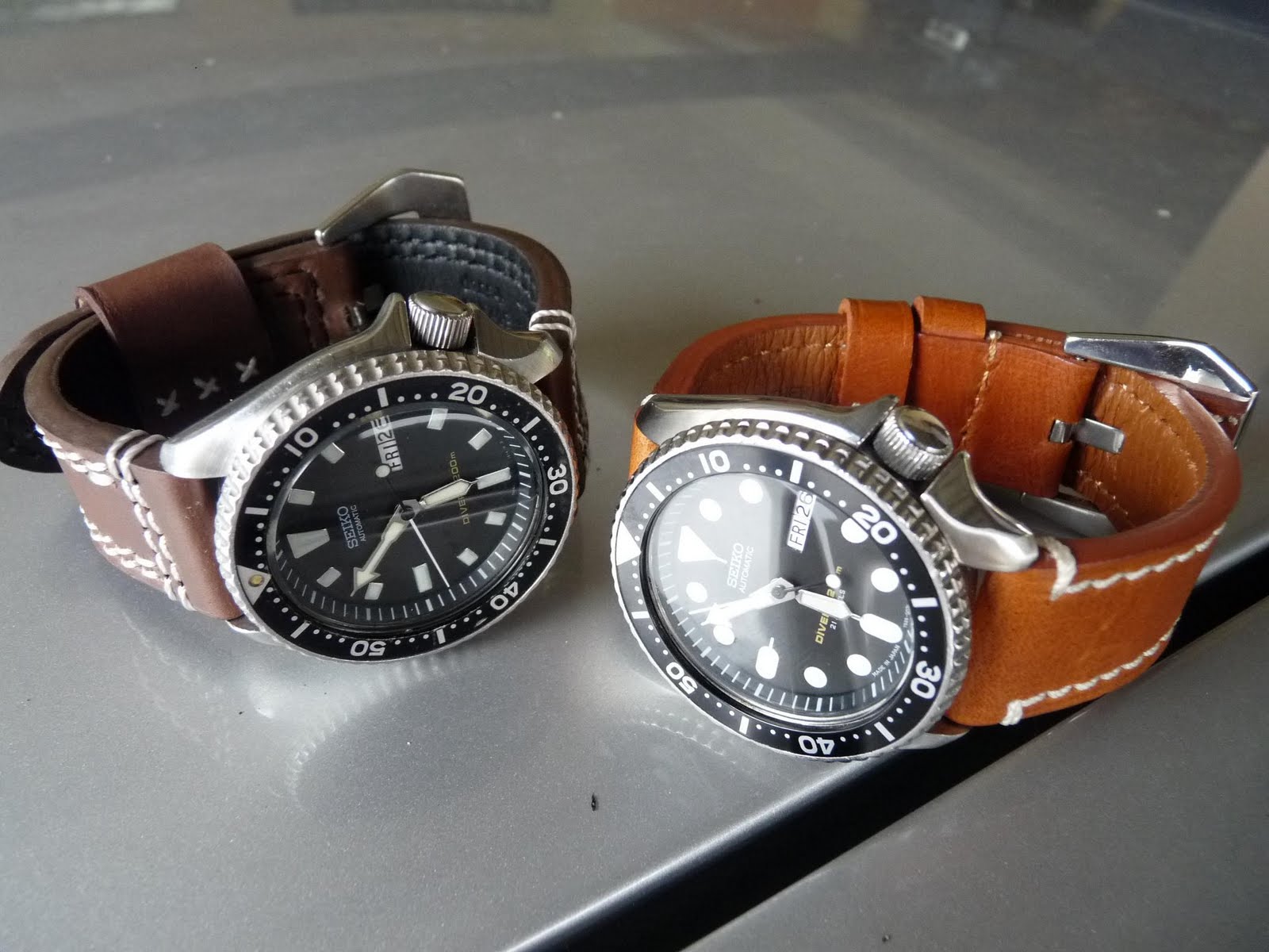 Perbandingan warna antara 2 warna coklat yang ditawarkan. Kedua-duanya ada kekuatan tersendiri... Setelah masuk kali kedua aku menggunakan tali jam Matterhorn ini bolehlah aku merumuskan bahawa tali jam ni sangat berbaloi dan baik kualitinya. Aku juga memutuskan untuk menganggap kedua-dua divers skx aku ni sebagai dress watch. Terima kasih kepada tali jam matterhorn yang berjaya mengatasi masalah saiz jam yang aku hadapi.